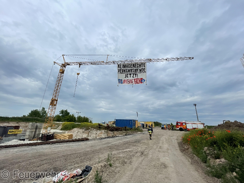 Es sollte ein Banner von einem Baukran entfernt werden.