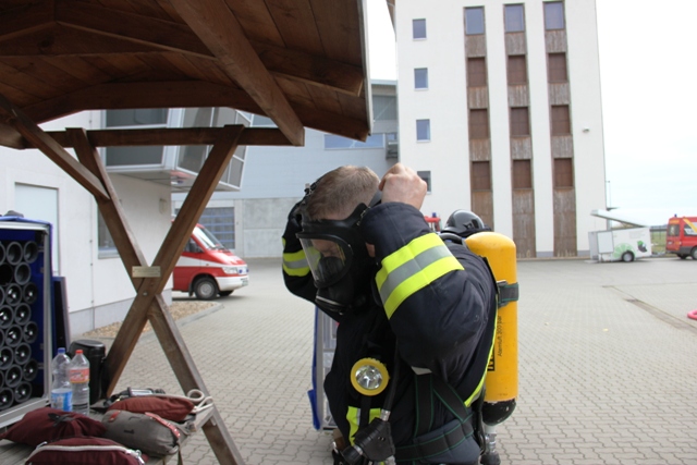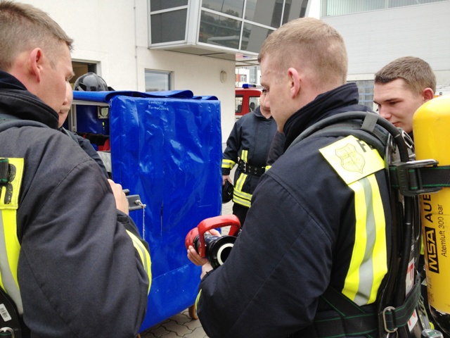 Besondere Gefahrenquellen waren hierbei ein Küchenbrand, bei dem es zu einer Durchzündung kam, und brennende Gasflaschen in einer Garage. Nach jeder Einsatzlage wurde eine individuelle Auswertung durchgeführt, so dass man das Erlernte bei der nächsten Übung gleich wieder anwenden bzw. auftretende Fehler gleich abstellen konnte. Insgesamt wurden von jedem Trupp vier Übungsszenarien und eine Wärmegewöhnung absolviert.
