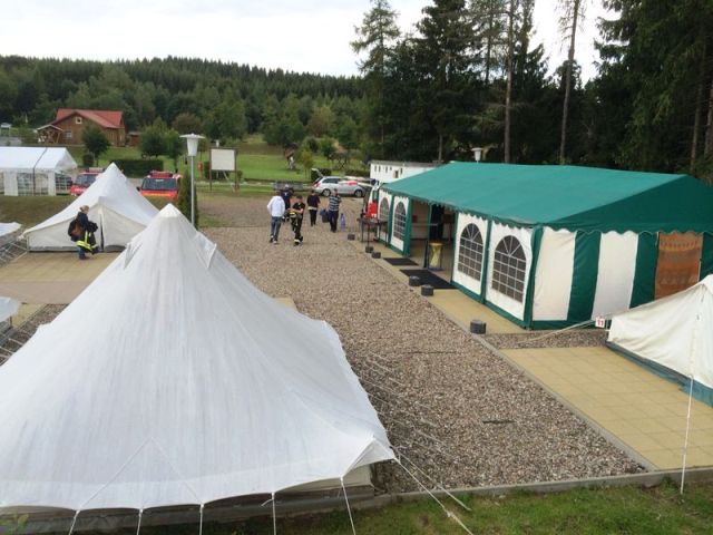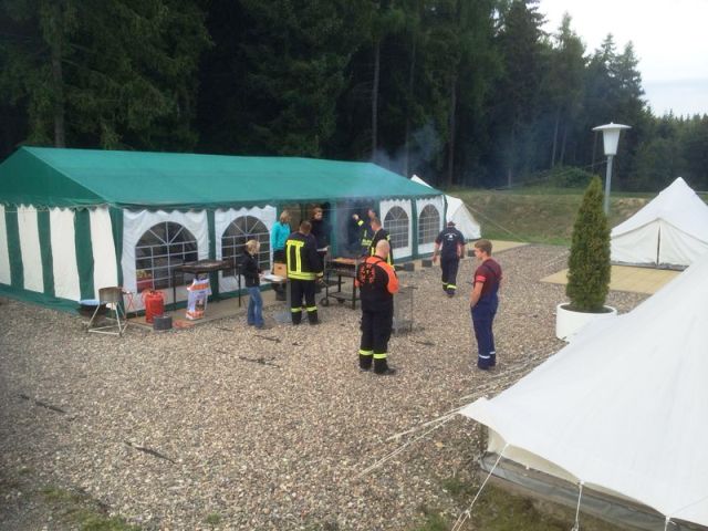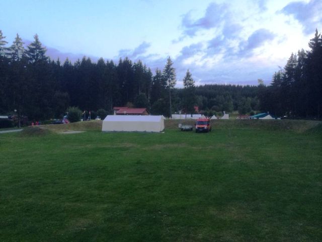 Am Freitag, den 22. August 2014, setzte sich „die Kolonne“ in Richtung Birnbaumteich in Bewegung. Nach der Ankunft bezogen wir die bereitstehenden 11 Unterkunftszelte. Da diese für unsere Teilnehmerzahl aber nicht ganz ausgereichend waren, musste noch ein weiteres Zelt von uns aufgebaut und eingerichtet werden.