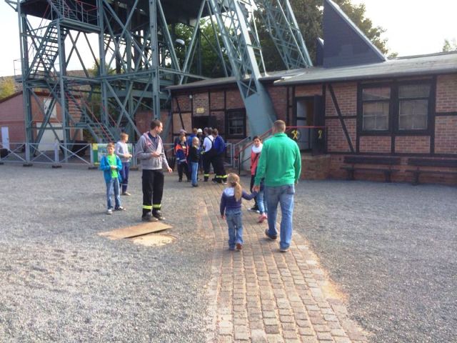 Am Samstagmorgen ging es nach einem ausgiebigen gemeinsamen Frühstück zu unserem Tagesausfl ug. Wir hatten den Röhrigschacht in Wettelrode in diesem Jahr als Ausfl ugsziel ausgesucht. Nach einer kurzen Fahrt sind wir in dem Erlebniszentrum Bergbau angekommen. Die erste Gruppe ist um 10:00 Uhr in den 283 Meter tiefen Schacht eingefahren. Die zweite folgte dann eine halbe Stunde später. Mit einer Grubenbahn ging es über 1.000 Meter in ein Abbaufeld des 19. Jahrhunderts, wo anhand von Schauobjekten die Abbauentwicklung von den Anfängen bis zur Neuzeit vorgeführt und erläutert wurde. Das Betreiben verschiedener bergmännischer Druckluftgeräte veranschaulicht die enorme Belastung, welcher der Bergmann ausgesetzt war. Gegen 12:00 Uhr hatten beide Gruppen wieder das Tageslicht erblickt. Zum Mittagessen gab es in dem Bergbaumuseum leckere Nudeln mit Tomatensoße.