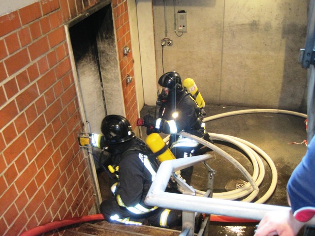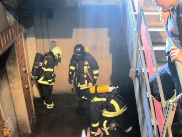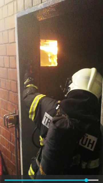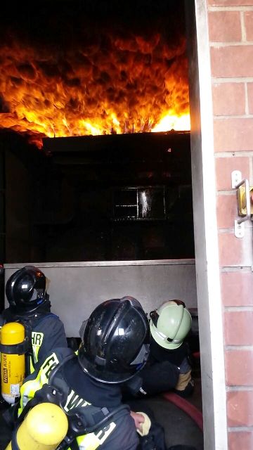 Bei einer Komplexübung wurde auch ein Atemschutzunfall eines Feuerwehrkameraden simuliert. Dieser verunfallte Kamerad musste aus dem Brandraum (Keller) über eine Außentreppe in Sicherheit gebracht werden. Nach dieser sehr anstrengenden Übung stand als letztes das Vorgehen bei einem „Flashover“ auf dem Programm. Ein Flashover ist eine Durchzündung, bei welcher eine Temperatur von über 1000°C entstehen kann.