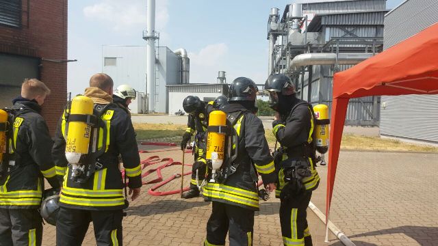 Am Samstag setzten sich die Kameraden bereits um 06:00 Uhr morgens mit den Mannschaftstransportfahrzeugen in Richtung Heyrothsberge in Bewegung. Gegen 07:30 Uhr erreichten wir das Gelände des IBK. Hier begannen sofort die Vorbereitungen für das Training. Es ist zu erwähnen, dass für das Training ein sehr hoher Materialaufwand notwendig ist. Es mussten alle Atemschutzgeräte, Flaschen, Schläuche und andere Gegenstände sowie die gesamte Versorgung mitgenommen werden.