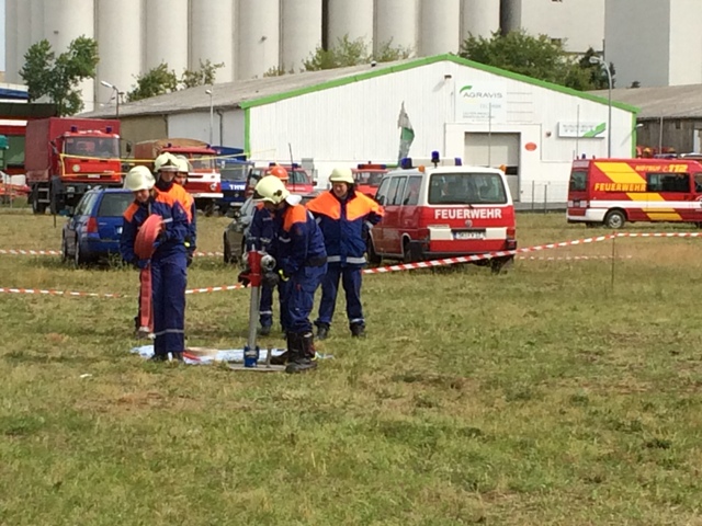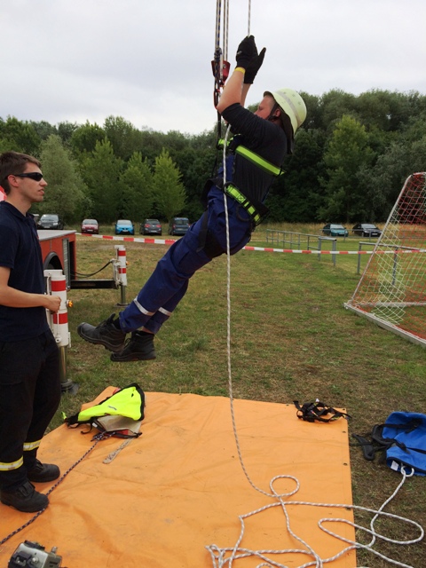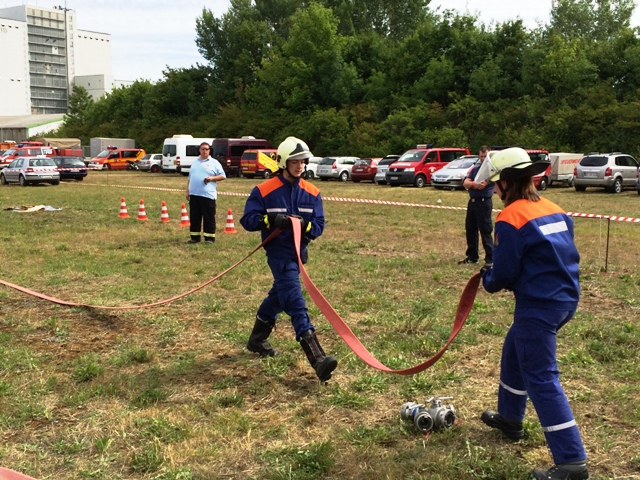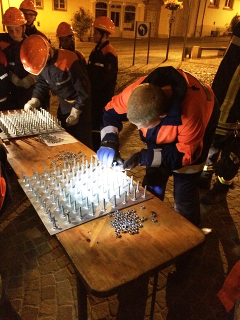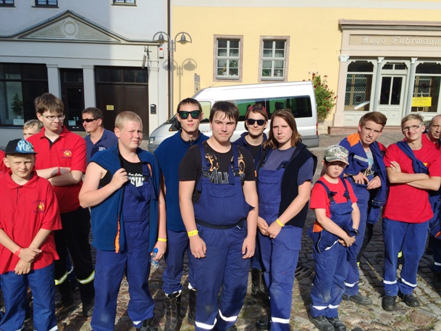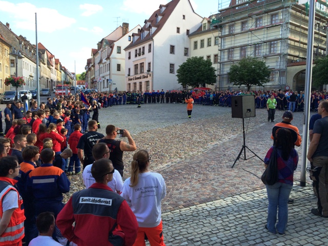 Nachdem soweit alles fertig war, erkundeten die Jugendlichen den Zeltplatz, unterhielten sich und unternahmen mit einigen anderen Jugendfeuerwehrkameraden etwas. Um 18 Uhr war, nach einem langen Fußmarsch auf dem Marktplatz von Querfurt, die Zeltlagereröffnung. Am späten Abend begann nach dem Essen die Nachtwanderung mit Stationsbetrieb. An Stationen wie Schläuche rollen, Hindernisparcours, Geschicklichkeitsübung und einem Feuerwehr-Quiz konnten die Jugendlichen ihr Können und Wissen unter Beweis stellen.