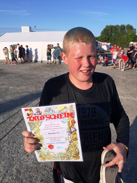 Nach einem ausgiebigen Frühstück am Samstag begann vormittags die Lagerolympiade rund um den Zeltplatz. An Stationen wie Erste Hilfe, Knoten, Erlebnispädagogik oder auch bei der Feuerwehrstafette mussten die Jugendlichen ihre Teamfähigkeit und Sachkenntnisse zeigen. Zur Abkühlung ging es dann am Nachmittag in den Nachbarort Obhausen zum Baden. Zur diesjährigen Neptuntaufe am Abend wurde Maximilian Voß auf den Namen „qualmender Feuerkrebs“ getauft. Das Highlight am späten Abend war natürlich die Disco auf dem Festplatz. Bei guter Musik, einer Showeinlage der Jugendfeuerwehr Langenbogen und alkoholfreier Cocktailbar konnten die Jugendlichen den Tag ausklingen lassen.