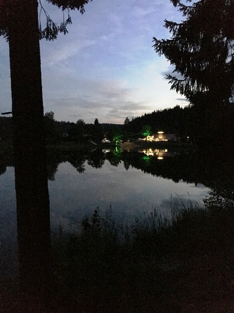 Zur Abenddämmerung ging die Nachtwanderung los. Zuvor wurden die Jugendlichen in 5 gleichstarke gemischte Gruppen aufgeteilt. Die Strecke im Wald rund um den Campingplatz wurde mit Knicklichtern markiert, nach denen sich die Jugendlichen orientieren sollten. Es mussten Hinweise gesucht werden, um am Ende der Nachtwanderung eine Schatztruhe am Strand zu finden, welche mit vielen kleinen Leckereien gefüllt war.